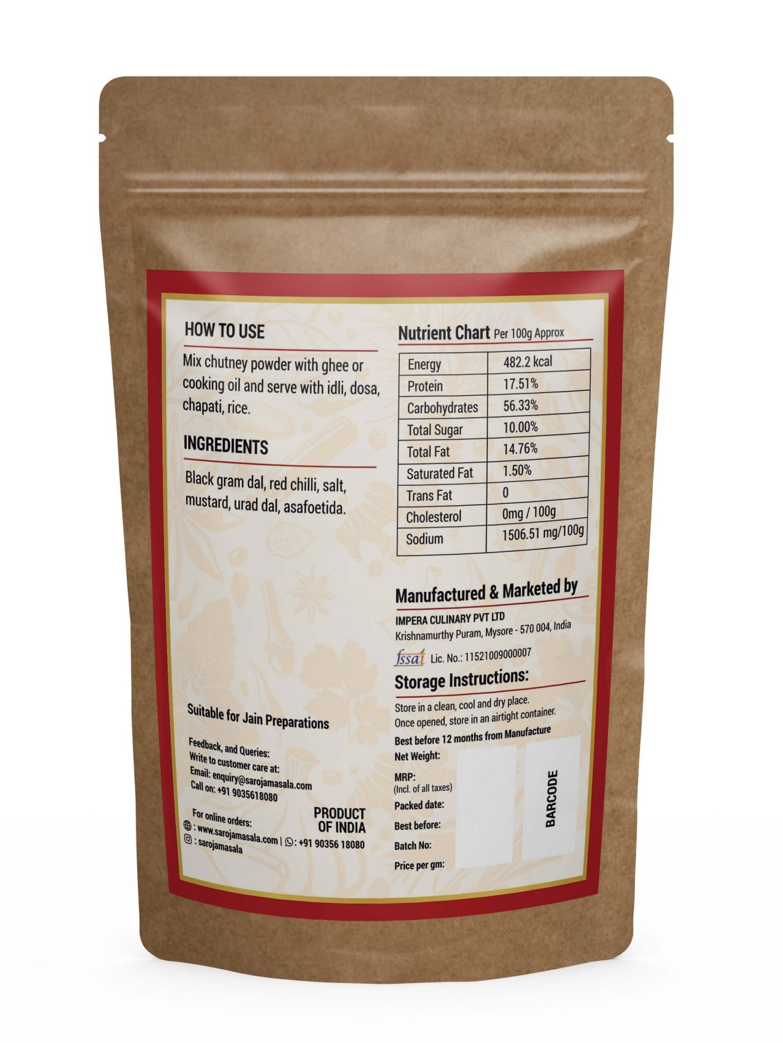 Our Chutney Powder is hygienically processed and packed to retain its natural aroma and taste. It is an ideal choice for those who love bold and spicy South Indian flavors.